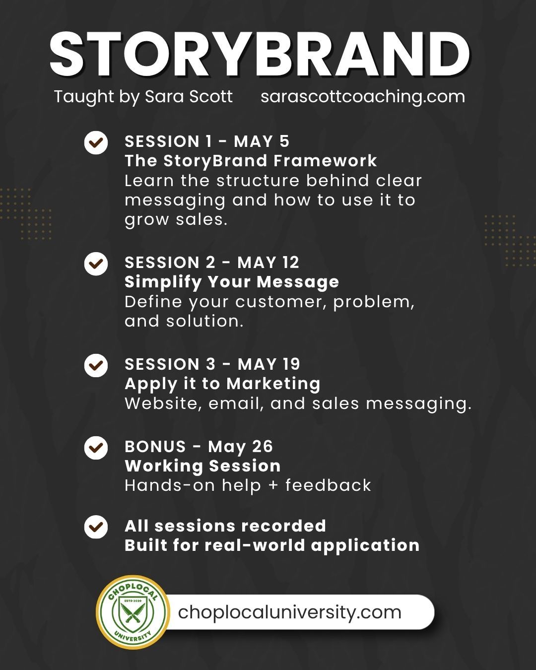 A 4-part live StoryBrand course for food and agriculture businesses that want marketing that actually drives sales.